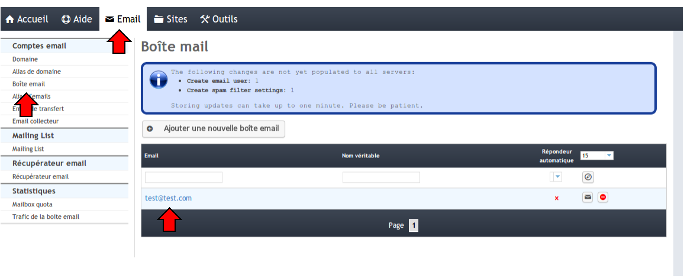 Pour cela connectez à votre panneau de configuration puis cliquez sur l'onglet email puis boite email, sélectionnez ensuite votre adresse de messagerie.